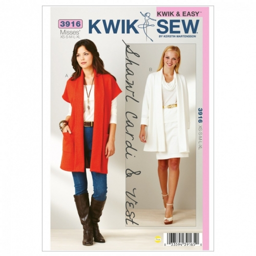 Founded in 1967 by Kerstin Martensson who also produced many of the early designs and patterns this company was an early leader in patterns perfected for use with knits. View B Cardigan has pockets in side seams and. Kwik Sew Ladies Easy Sewing Pattern 3916 Shawl Cardigan Waistcoat.